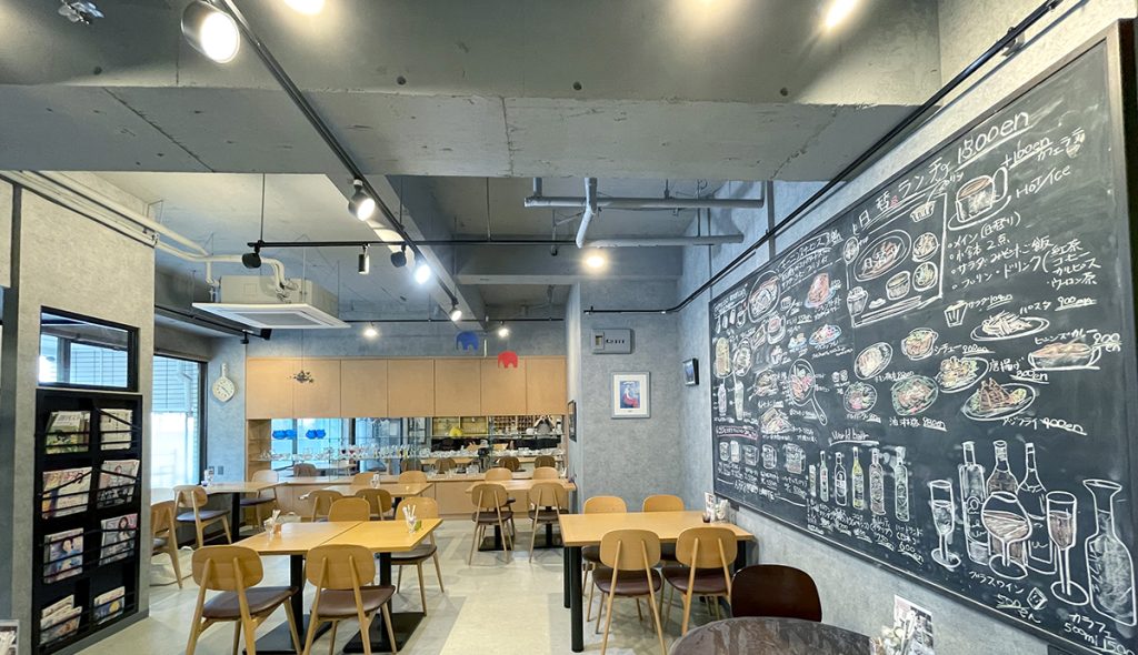 鹿児島市内のカフェ内装リフォームを行いました。天井・壁紙・床のリニューアル、家具の木工を行いました。